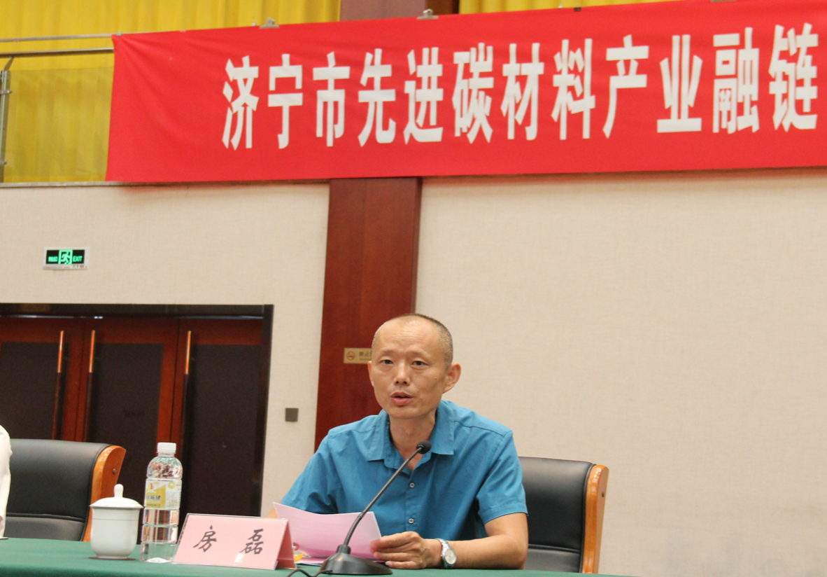 山东大学科学技术研究院科技开发与应用中心主任房磊代表学校发言,彰显百年名校的科技担当。他指出,在全球新材料产业格局重塑的背景下,先进碳材料是支撑高端制造、新能源等战略产业的核心基础。山东大学材料科学与工程学科作为国家重点学科,与济宁市共建的碳材料工程技术研究院聚焦六大方向,包括高性能碳纤维、石墨烯等,打造“基础研究-中试孵化-产业转化”闭环生态。房磊表示,“我们将以本次活动为契机,推动产学研深度融合,助力企业突破‘卡脖子’技术瓶颈,实现产品从‘跟跑’到‘领跑’的跨越。”