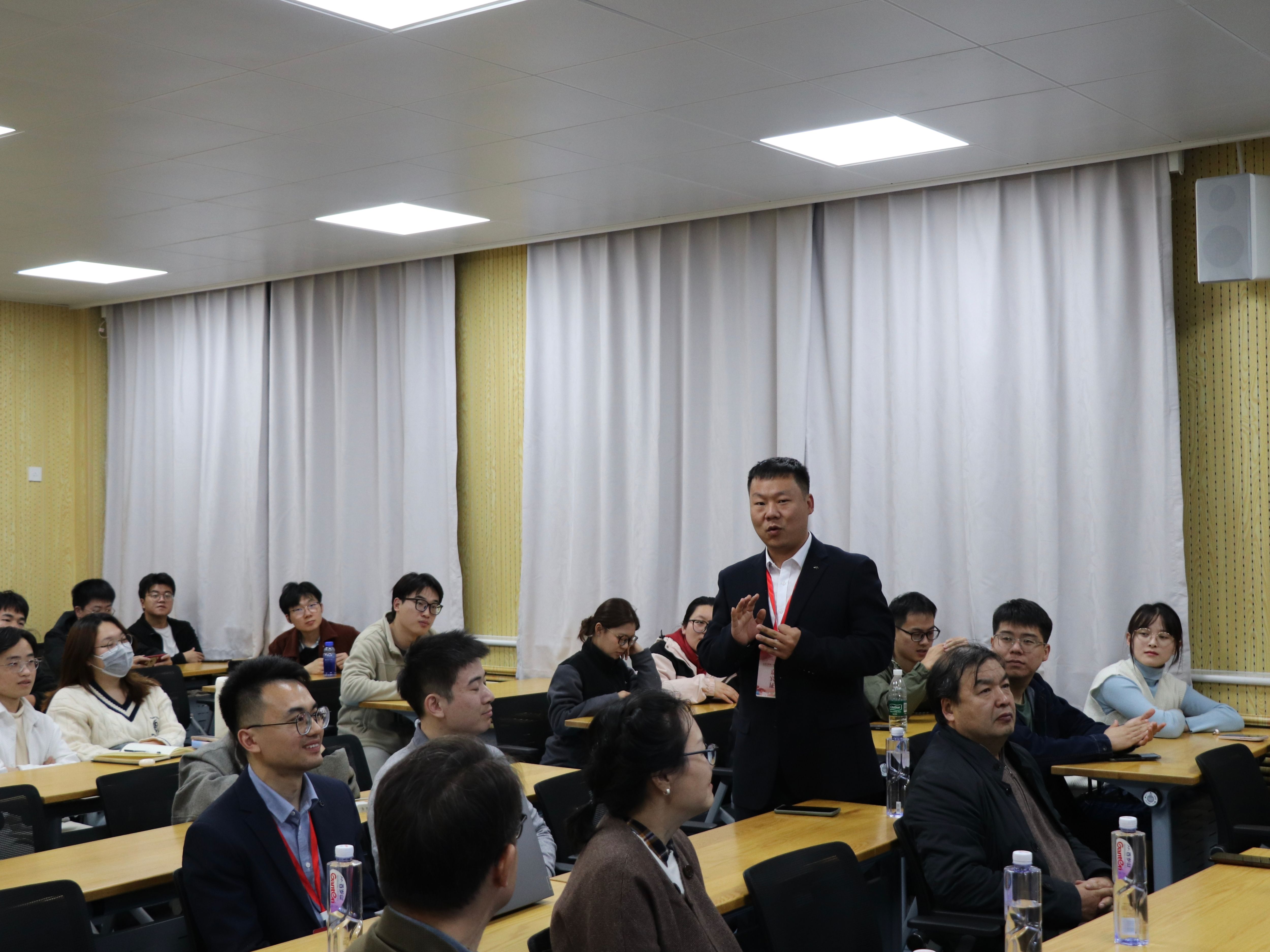 学术报告环节由研究员唐建伟主持,青年学者依次作精彩学术报告。英国国家物理实验室高级科学家姚旭辉、剑桥大学博士后王睿和大连理工大学博士后彭博分别以“电化学能源器件中的新型技术、计量和标准化”、“锂离子二次电池电极材料缺陷调控与构效关系研究”和“铜/钢双金属复层材料制备及力学行为研究”为主题作报告,介绍了相关领域的前沿热点,分享了最新成果。报告引起了热烈讨论,周传健院长、王儒涛教授针对报告与青年学者展开深入讨论,在场师生获益良多。