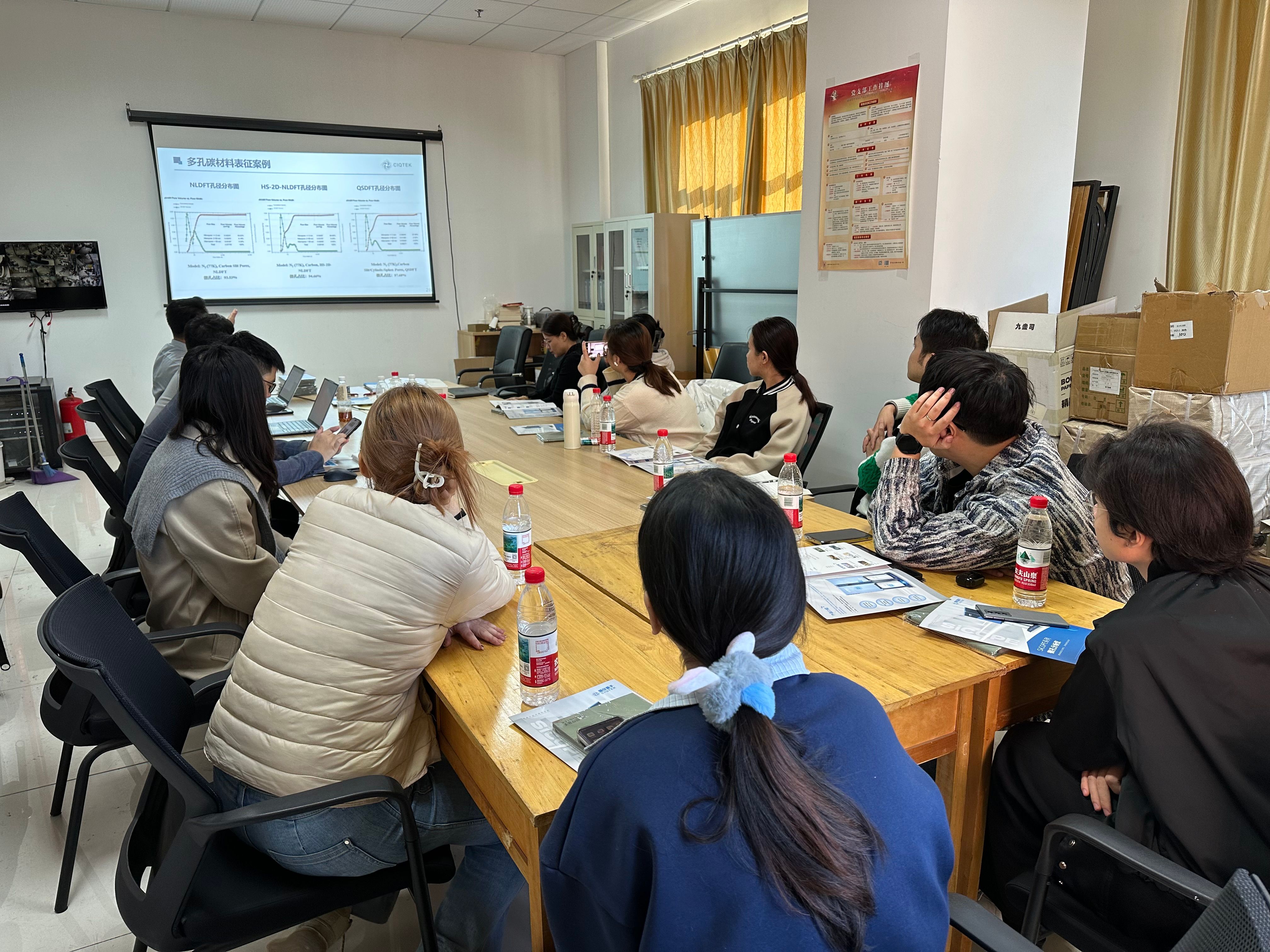 培训会上,平台老师介绍了国产示范活动的意义和工作模式,来自国仪量子的技术专家聚焦物理吸附基本原理,深入阐释了气体吸附基础理论、比表面积计算模型、孔径分布评估方法等核心知识。课程结合实例,详细剖析了样品预处理、测试参数设置、数据解读等环节中常见的认知误区和操作陷阱,帮助学生规避实验偏差,提升测试效率与实验数据可靠性。现场学生积极参与互动,就纳米材料、多孔催化剂等样品测试的技术难题与工程师展开讨论。参会同学表示:“这次培训将抽象理论与实际操作紧密结合,让我们对材料表征有了更立体的认识。”